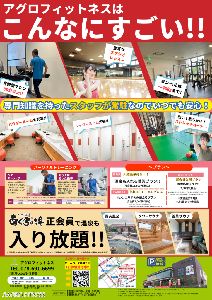 #アグロフィットネス #あぐろの湯 #神戸ジム #温泉ジム#秋から始めるフィットネス #乗り換え割 #フィットネスライフ