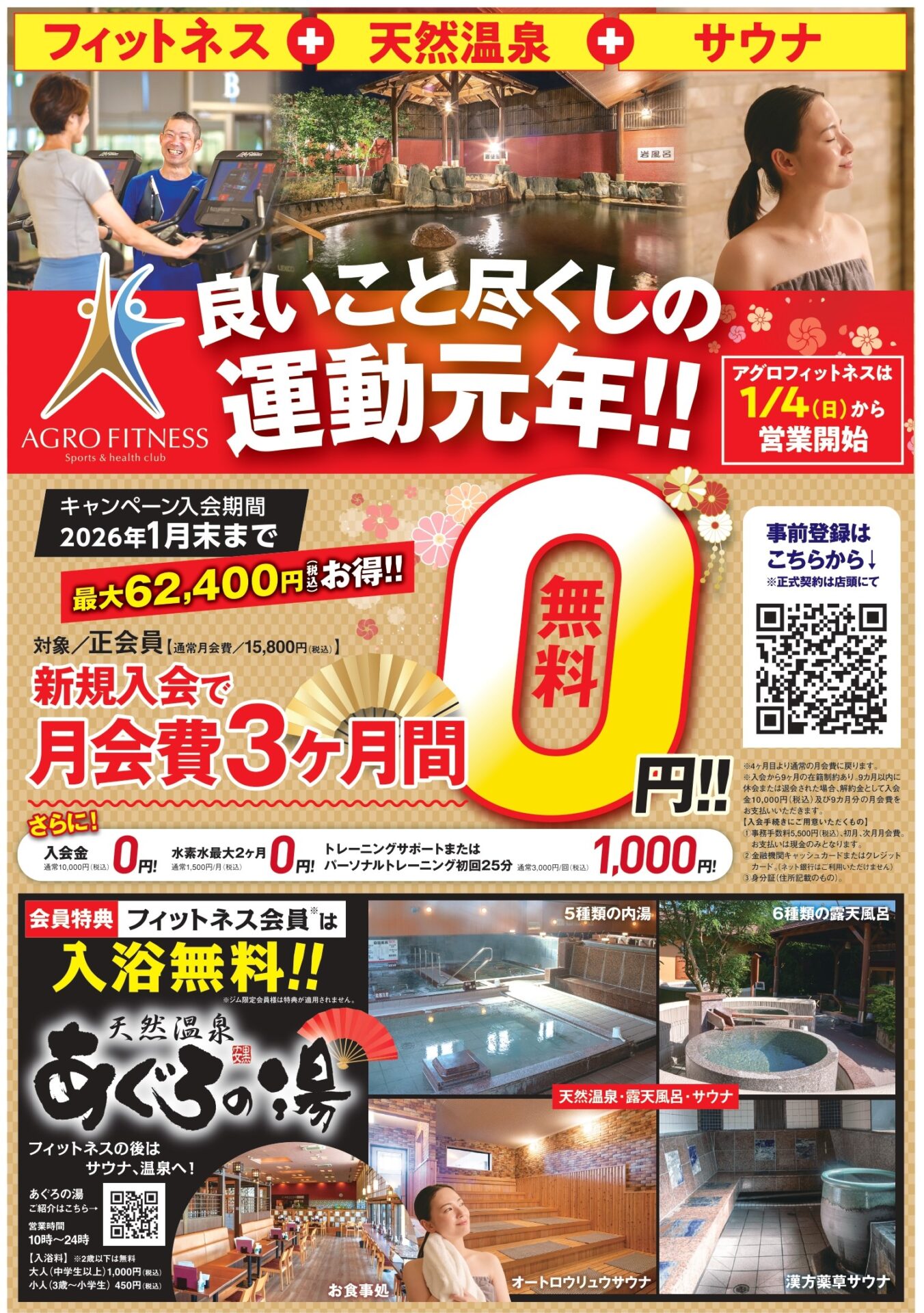 さらにアグロフィットネスの会員様はあぐろの湯の入浴無料♨